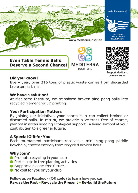 Collaborating with the ITTF Foundation is always an honour for the Mediterra Institute. Their ongoing efforts to combine table tennis, health, social impact, and sustainability strongly align with our mission to develop educational and creative projects rooted in environmental responsibility.