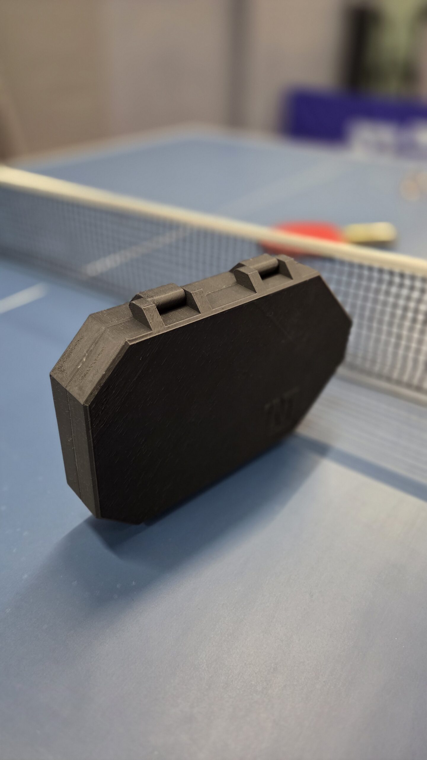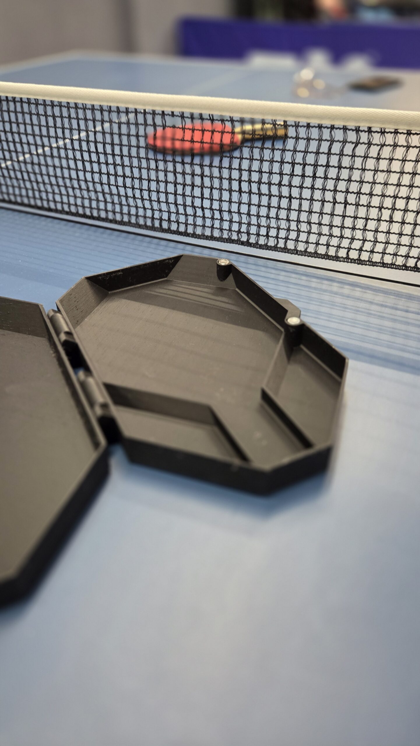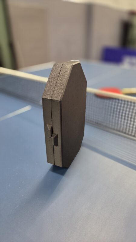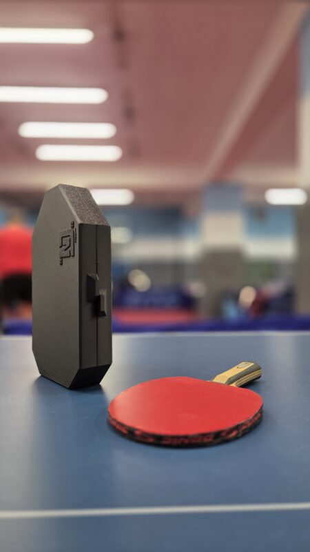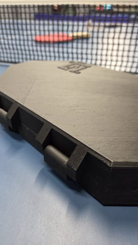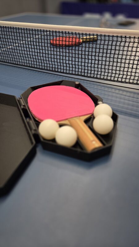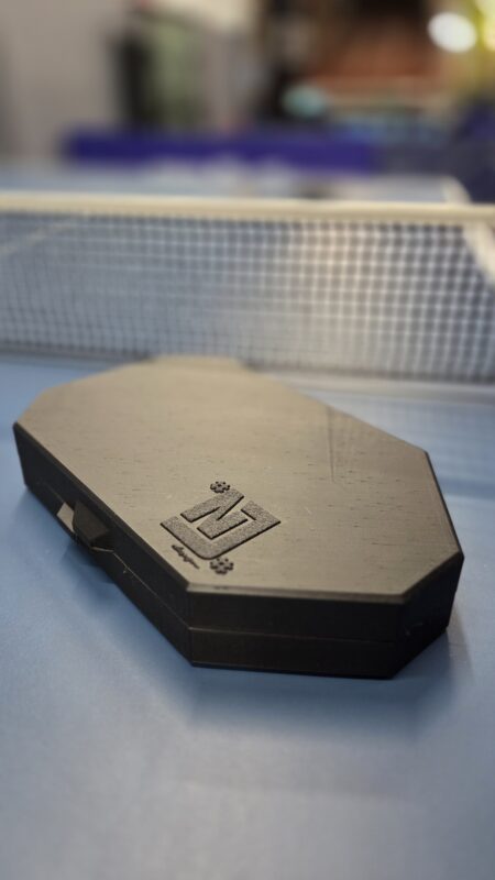 Σκληρή θήκη για ρακέτα πινγκ πονγκ, αποκλειστικά με 3D εκτύπωση, χρησιμοποιώντας νήμα που προέρχεται από σπασμένα και ανακυκλωμένα μπαλάκια πινγκ πονγκ.